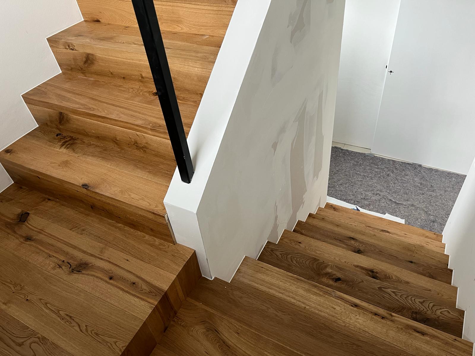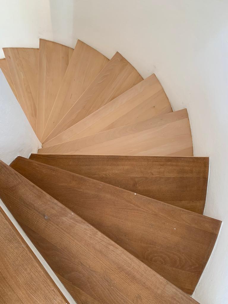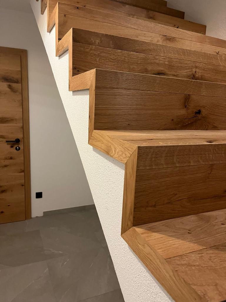 Wir verkleiden ihre Treppe mit maßgeschneiderte Treppenstufen aus hochwertigen Parkett- und Vinyl-Fertigfußböden. So schaffen wir harmonische Übergänge zwischen Bodenbelag und Treppe – ganz nach Ihrem persönlichen Stil und den räumlichen Gegebenheiten.