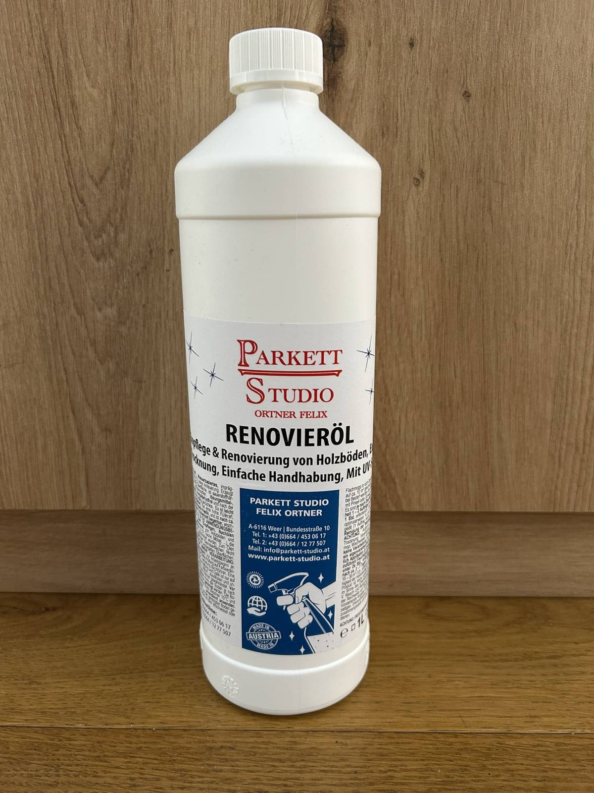 Unterhaltspflege für geölte Parkettböden und Treppen. Vergraute geölte Böden werden farblich wieder aufgefrischt. Öl-Emulsion auf Basis natürlicher Rohstoffe, welche geölte Oberflächen schützt.
