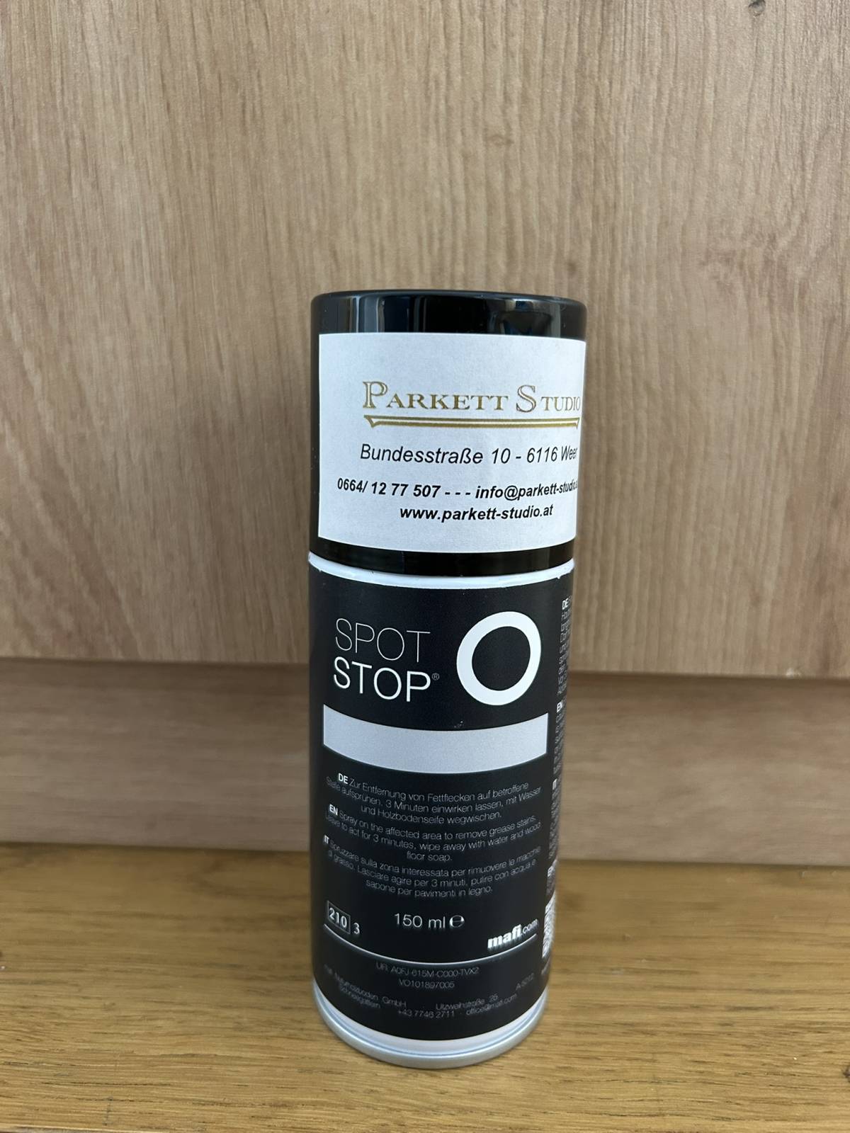 Der mafi Spotstop dient zur einfachen Entfernung von Fettflecken auf geölten Holzböden.