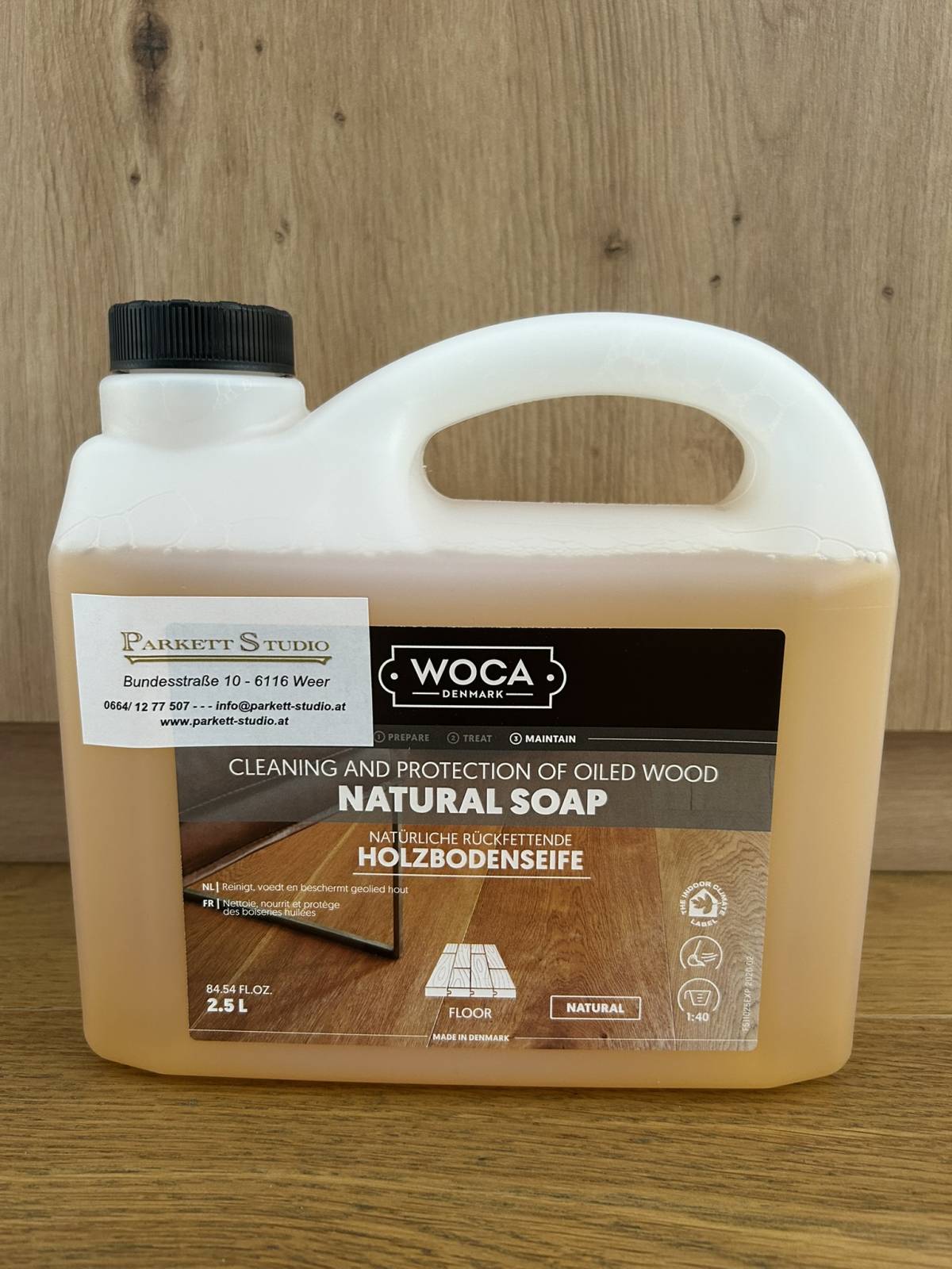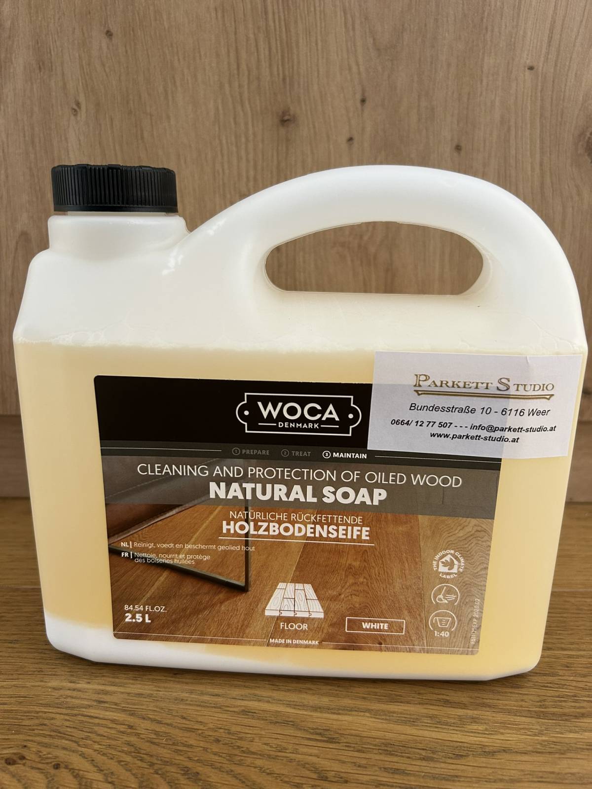 WOCA Holzbodenseife wird aus natürlichen Pflanzenfetten ohne Zusatz von Duftstoffen oder Lösemitteln hergestellt. Die Holzbodenseife ist zur regelmäßigen Reinigung und zum Schutz aller Holzböden anwendbar. Die Holzbodenseife natur wird für natur geölte Varianten verwendet, oder Holzböden die dünkler sind!