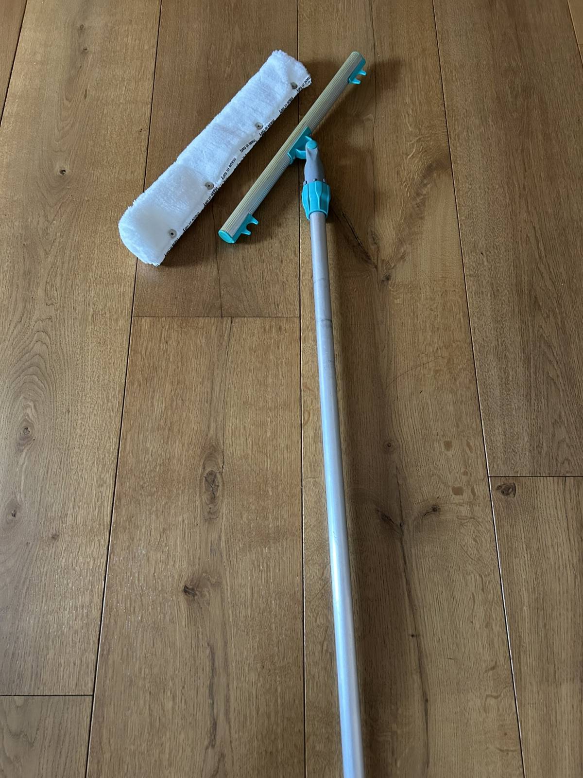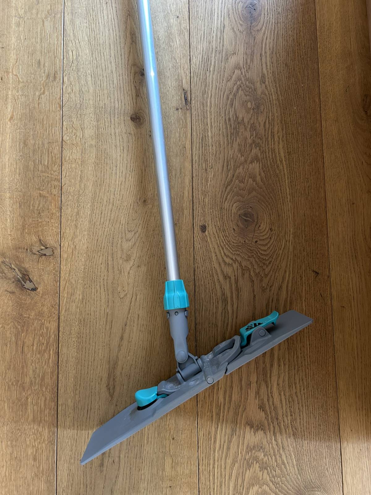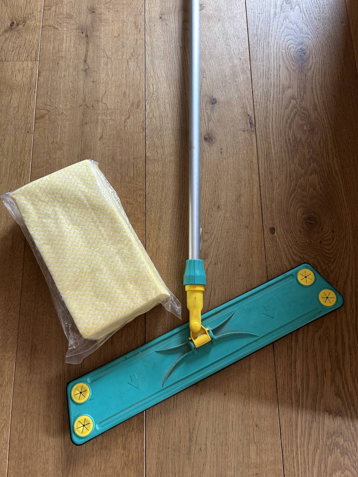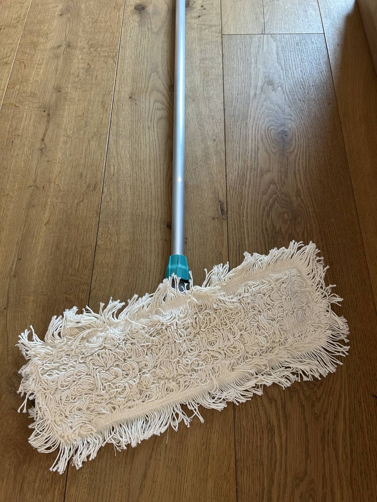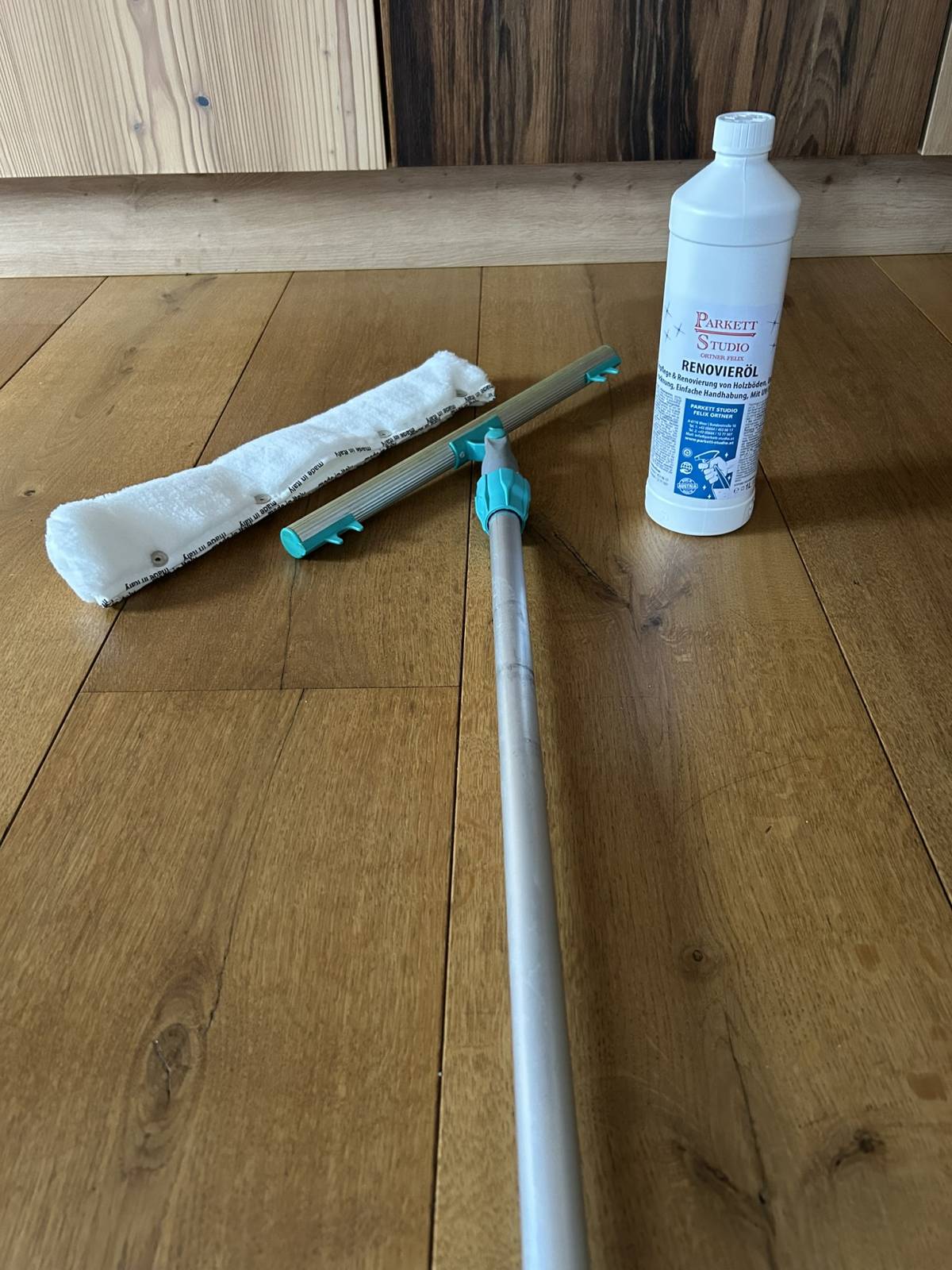Die Öl-Wisch-Pflege wird ins lauwarme Wischwasser gegeben. Bitte verwenden Sie nur Baumwoll-Bezüge, da Mikrofaser dem Holz das Öl entzieht. Baumwolle pflegt Ihren Boden.