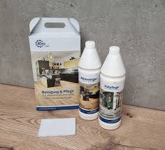 Inhalt: 1 lt. Aktivreiniger, 1 lt. Vollpflege matt, Pflege- und Reinigungsanweisung + 1 weißes Handpad
